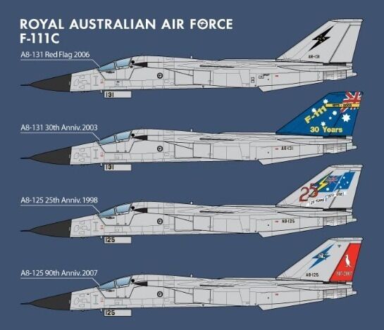 This kit includes decals to representfour different events in the F-111c's operational history: