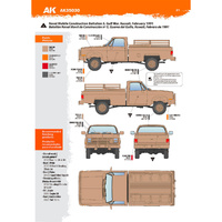 The reference AK35030 represents the basic cargo truck version of the vehicle fitted with troop seats in the bed which may be assembled in folded or unfolded position. The tail gate can also be fixed as folded or unfolded, or remain movable. The decal sheet contains markings for two US Army, two US Navy and one SFOR vehicle, each of them carrying a different overall color or camouflage pattern.