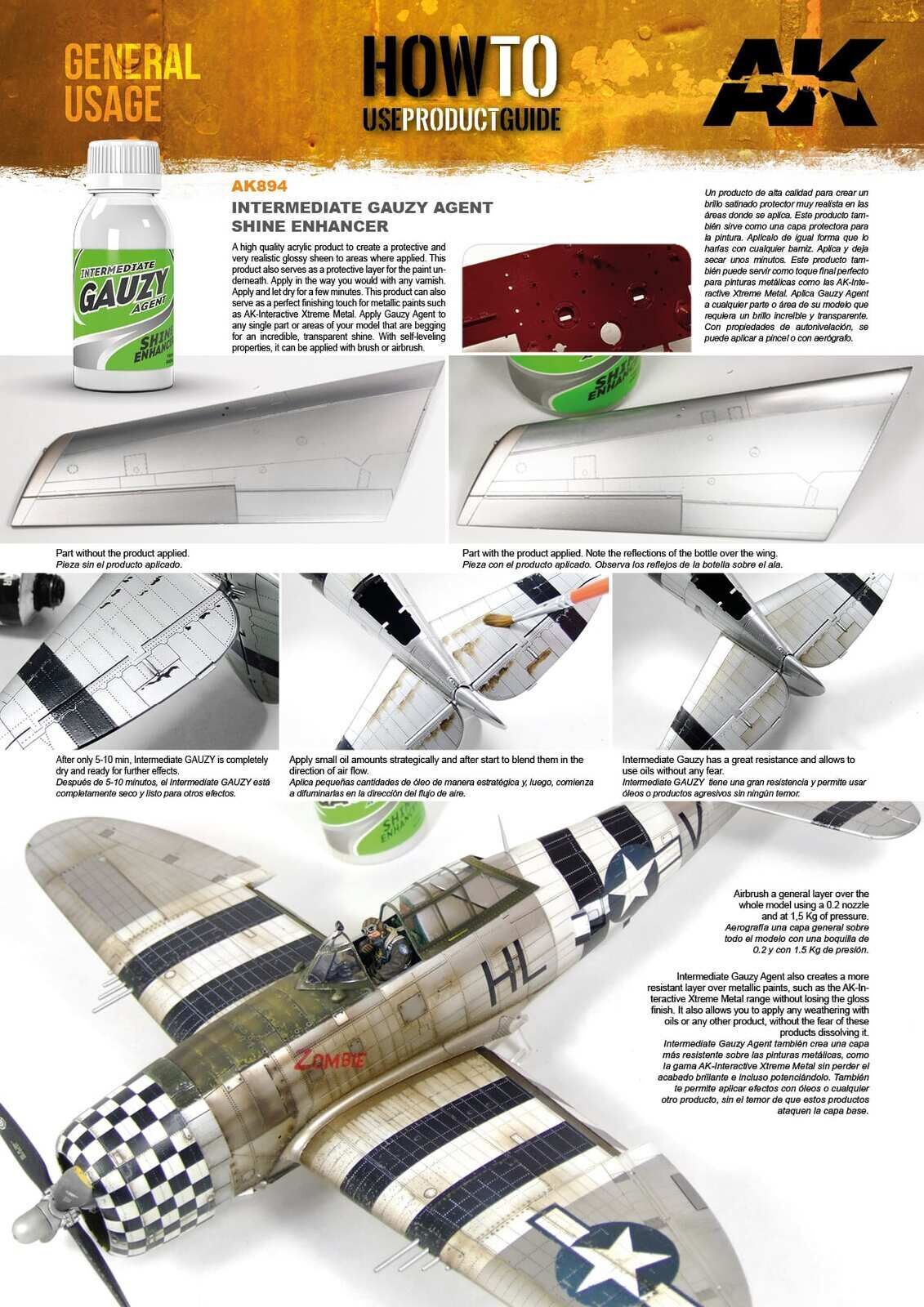 High quality product to create a protective and very realistic glossy sheen to areas where applied. This product also serves as a protective layer for the paint underneath. Apply in the way you would with any varnish. Apply and let dry for a few minutes. This product can also serve as a perfect finishing touch for metallic paints such as AK Interactive Xtreme Metal. Apply Gauzy Agent to any single part or sections of your model that are begging for an incredible transparent shine. With self-leveling properties, it can be applied with brush or airbrush.