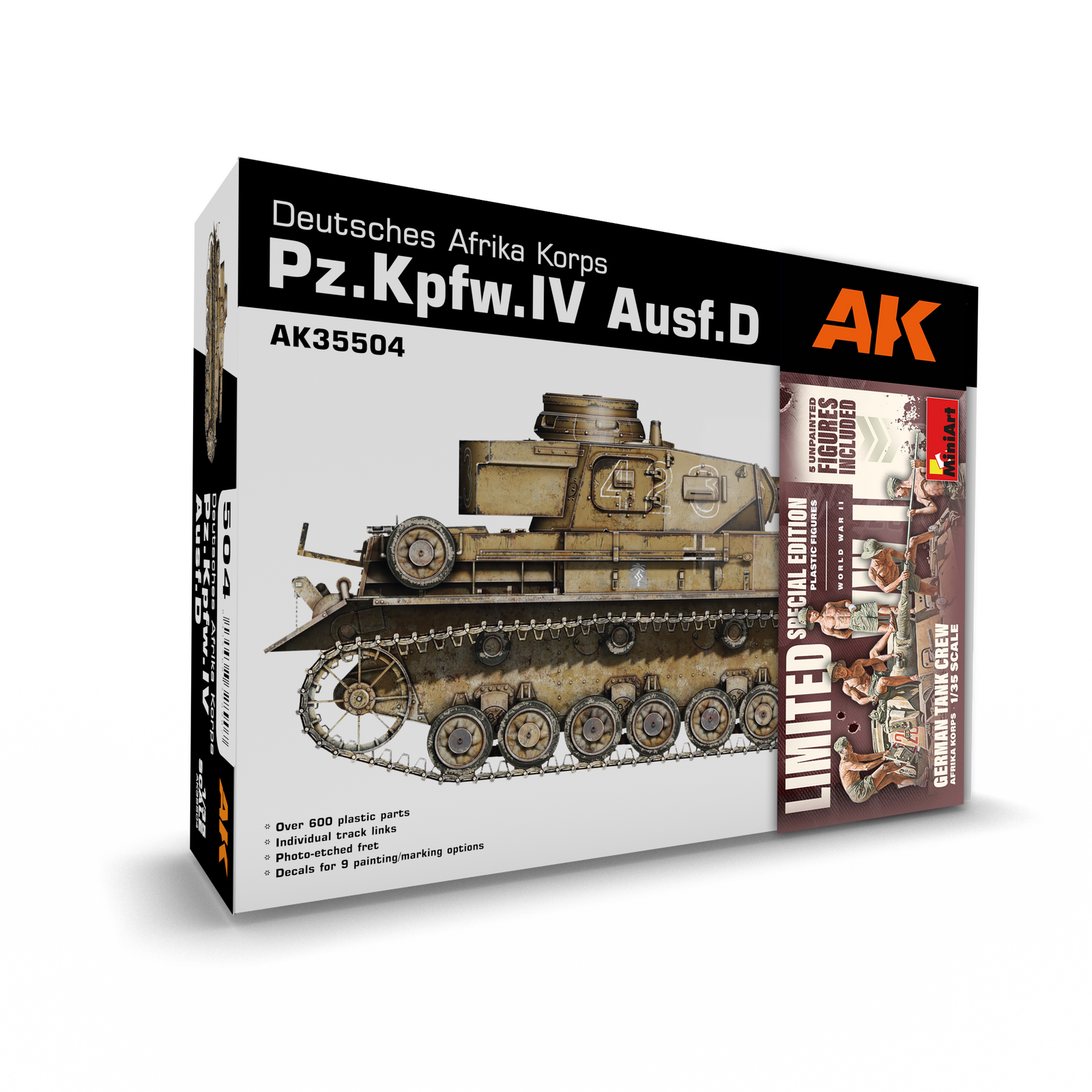 Limited edition 1/35 scale model kit of the Panzer IV Ausf.D tropical version.