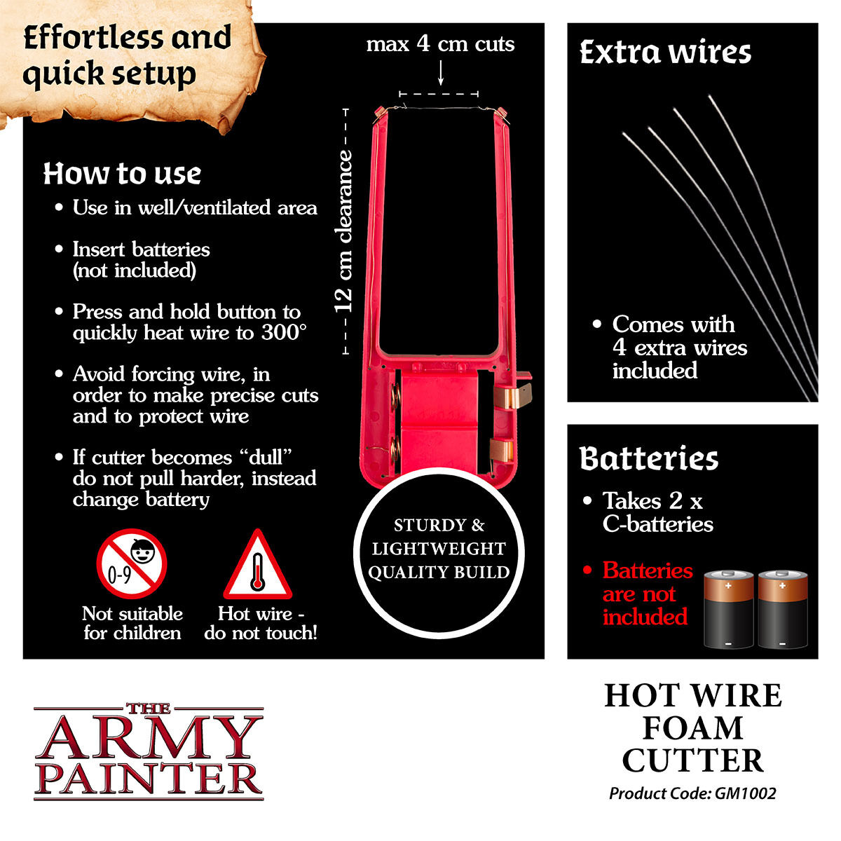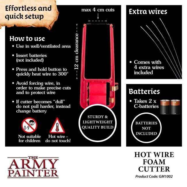 This incredibly precise Hot Wire Foam Cutter will give you clean, accurate and fast cuts – every time! It is the perfect tool for cutting XPS foam sheets for any dungeon backdrop, wargaming terrain or landscape scenery.
