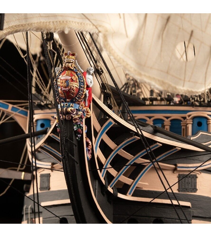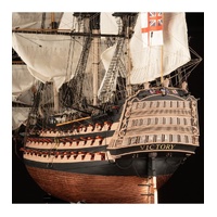 Thanks to this magnificent kit, you will be able to build this historic ship with its high level of detail. It contains over 6,500 parts made of high-precision laser-cut board, hardwoods, brass and iron cast. As well as copper lining for the hull, cotton sails sewn and ready to be fitted, and a wooden work base. Remarkable is that all its lower cannons are also complete, there are no false cannons. In total, it has 104 cannons, with six different types.