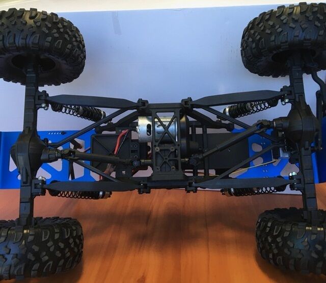 The BF-4J Crawler from River Hobby is a great entry level truck with classic crawler style and a rugged chassis design. Features include: * Front and rear straight axle design * Trailing link suspension for maximum articulation * Telescopic sliding universal centre driveshafts * Front CVA drive shafts * Gear differentials * Metal output/crown and diff gears * Oil filled adjustable (threaded) shocks * 3mm thick alloy front and rear bumper brackets * Moulded bumpers/roll cage with HD tray/rear view mirrors/lights and mudguards * 560mm lenght over all, 305mm height, 287mm tall * Brushed version comes with 7.2V battery and charger * Includes FlySky 2.4 radio system Requires 8x AA batteries to complete the package.