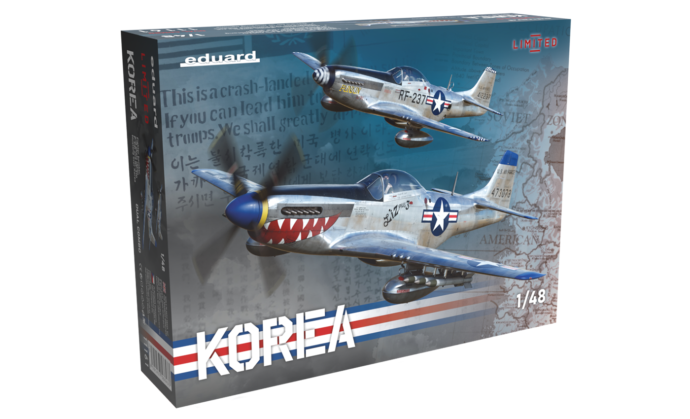 Limited edition kit of US fighter aircraft F-51D and RF-51D Mustang in fighter bomber and photo reconnaissance role used in War in Korea scale 1/48.