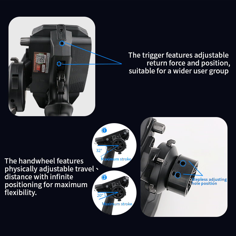 Adjustable trigger travel, trigger preload, steering wheel preload