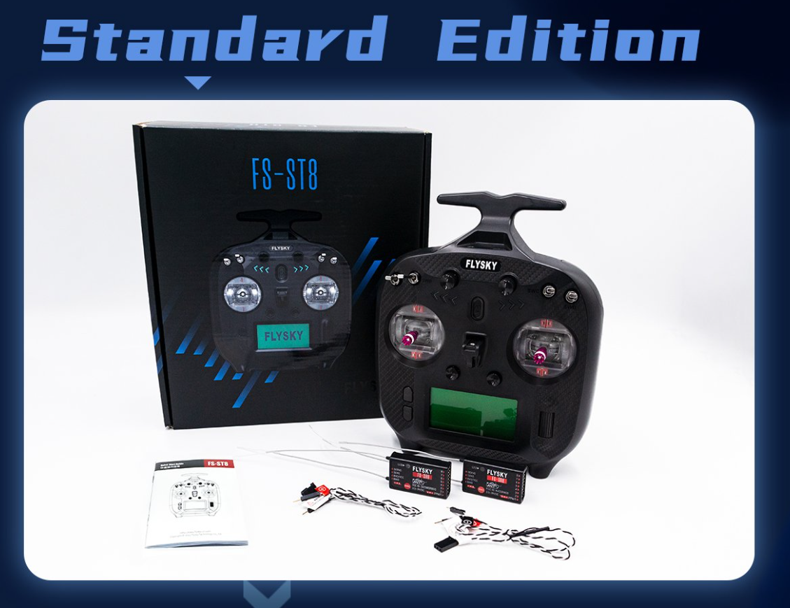 Flysky ST8 2.4G 8-CH Radio with 2 Receiver's, fixed-wing, delta-wing, glider, helicopter, multi-axis, FPV, car model, engineering vehicle, robot,