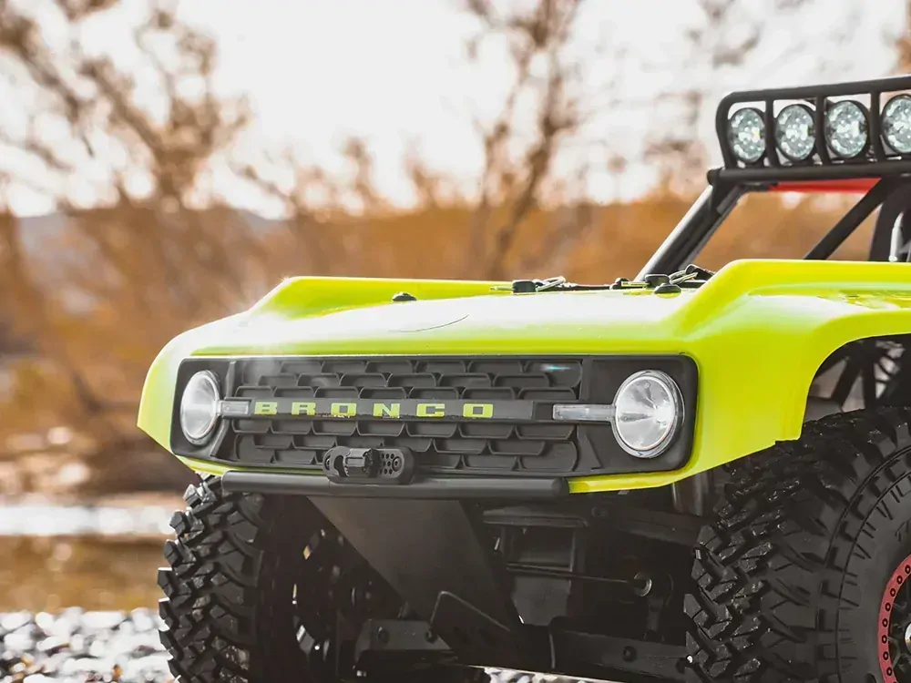 Introducing the Ford Bronco RTR EB, a 1/7 scale short course truck officially licensed by Ford and RTR Vehicles. Inspired by the full-size Bronco that dominates Ultra4 racing, this RC truck captures the spirit of off-road racing with bold design and rugged authenticity. From desert runs to rocky trails, it channels the full-size thrill into a compact, high-performance RC car — faithfully capturing the spirit of the original and inviting you to explore the wild, one trail at a time.