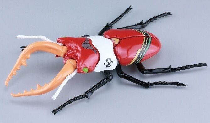 Fujimi's realistic Stag Beetle model kit returns in colors like those of Evangelion Unit 02! Its main parts like the horns, chest and legs are movable so it can be displayed in various poses; it can be displayed in flight by replacing the clear-molded inner wing parts. It assembles easily, too, with no glue required! Marking stickers for N-01 and N-02 are included as well