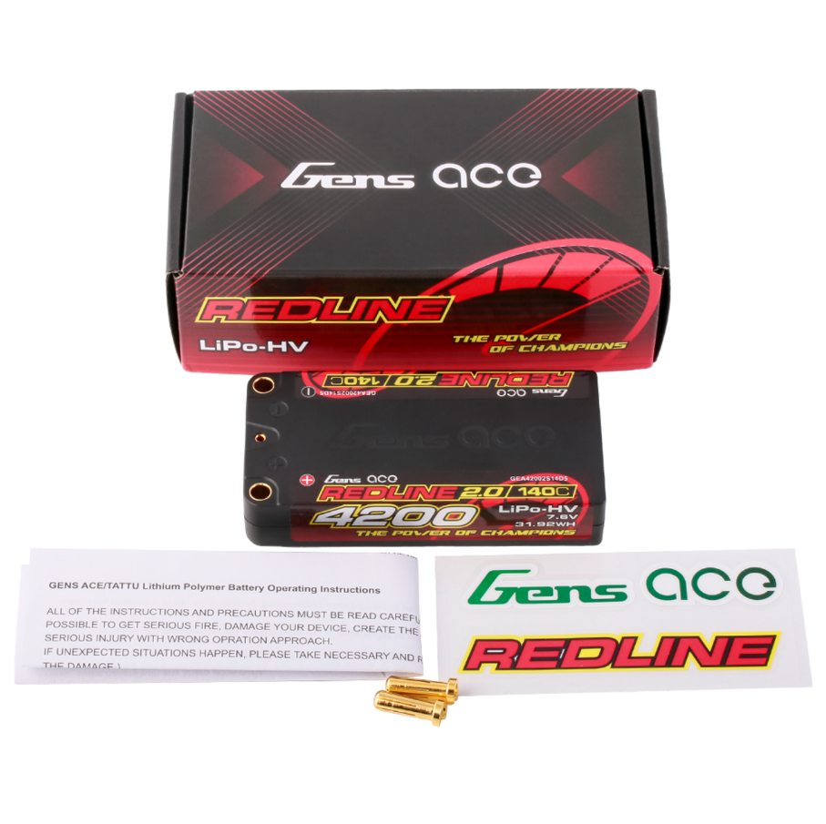 Gens Ace 2S Redline 2.0 4200mAh 140C 7.6V Hardcase Lipo Battery (5.0mm Bullet)
