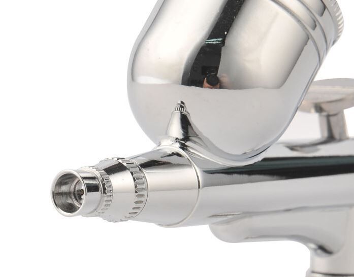 The airbrush is adaptable to use 0.2, 0.25, 0.3, 0.5 mm nozzles/needles sold separately.