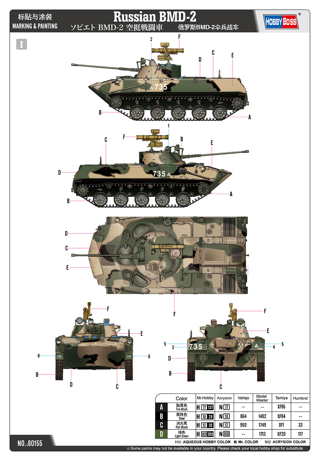 The BMD-2 is an airborne tracked armored IFV Infantry Fighting Vehicle designed by the Russian defense Company Arkadyi Shabalin. The first prototype of the BMD-2 was completed in 1985 and was first seen in 1988. Production of vehicles started in 1989. Production of the BMD-2 was undertaken at the Volgograd Tractor Plant. The vehicle has been designed to be airdropped by parachutes thanks to a very light hull and a small combat turret. It has a weight of only 8,225 kg. It is now being supplemented by the more advanced airborne infantry armored vehicle BMD-3.