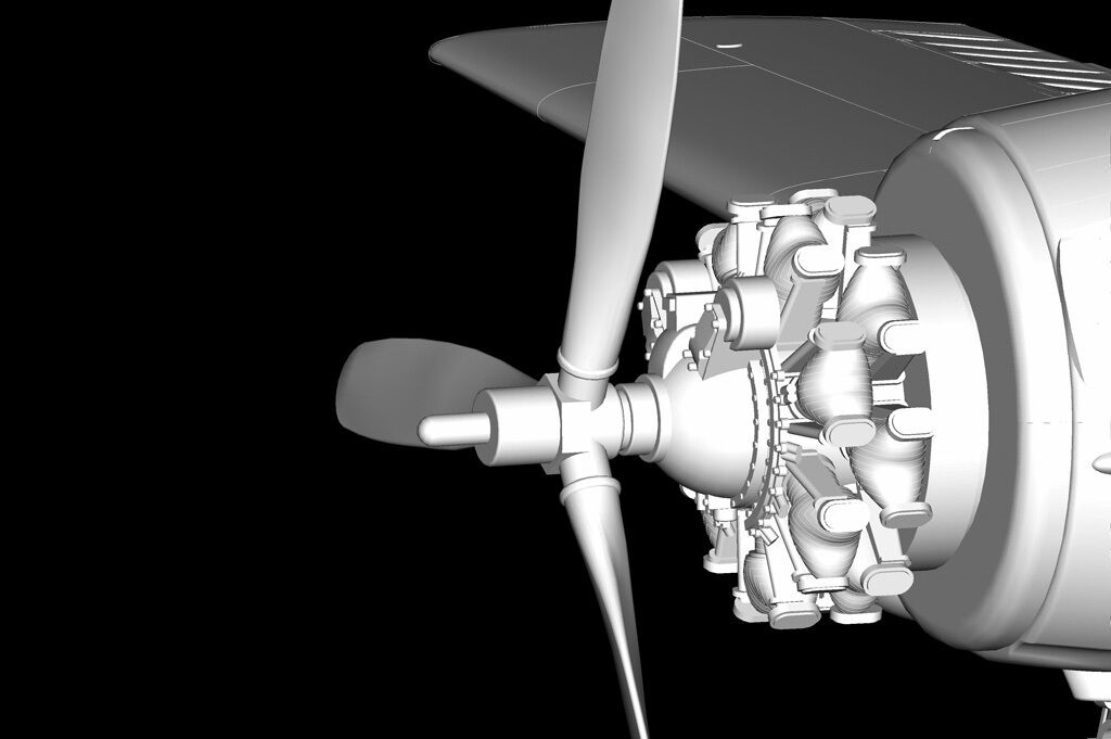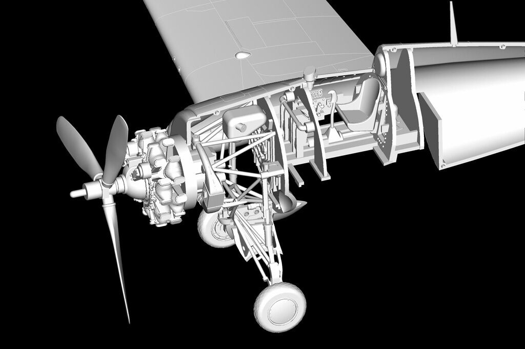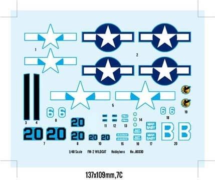 The FM-2 Wildcat was designed and prototyped by Grumman Aircraft. More than 4000 were built by the Eastern Aircraft Division of the General Motors Company between 1943 - 1945. These aircraft incorporated a lighter airframe and a more powerful engine. This meant there was a physical design difference between the F4F and the FM-2. The FM-2 had a taller vertical tail for stability to counter the increased torque of the engine. Armament consisted of 4 - .50 cal. guns, 2 - external bomb or fuel racks and air to ground rocket launch points on the wings. These aircraft were primarily operated from escort carriers to support ground operations in the Pacific theater of operations. These same aircraft were teamed with Grumman Avengers and used in anti-sub operations in the Atlantic against U-boats.
