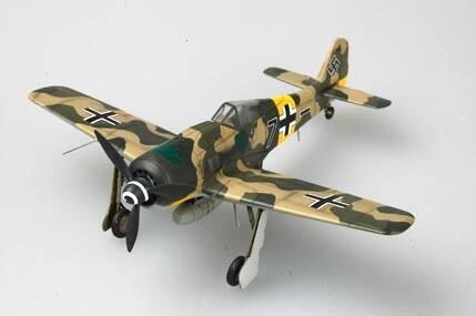 The Focke-Wulf Fw190 was a single-seat, single-engine fighter aircraft of Luftwaffe, and one of the best fighters of its generation. Used extensively during the WWII, over 20,000 were built, including around 6,000 fighter-bomber models. Production ran from 1941 to the end of war, during which time the aircraft was continually updated.The Fw190 A-6 was developed to improve the shortcomings found in previous A models when fighting with US heavy bombers. Modifications to the type to date had caused the weight of the aircraft to creep up. To combat this and to allow better weapons to be installed in the wings, a larger, bigger, lighter wing was designed. This new wing was introduced into production with the A-6. About 1055 A-6s were built between May 1943 and March 1944.