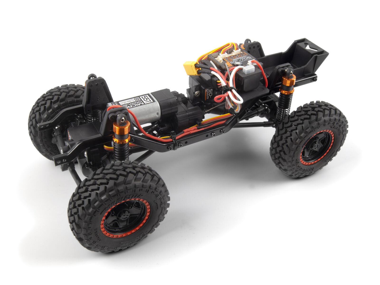 The Venture18 chassis is loaded with potential, making it extremely versatile on the trail and up tough climbing routes. Its capability lies in several factors, including off-road friendly clearance angles from the tire contact points to the bumpers and chassis, as well as good ground clearance thanks to its minimal diff case size.