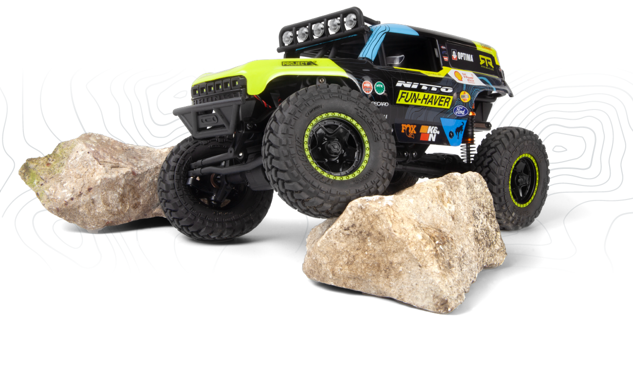 Styled after Vaughn Gittin Jr.’s unmistakable Ford Bronco 4400, the officially licensed Venture18 RTR captures the attitude and aggression of its full-scale counterpart. With its eye-catching livery inspired by Vaughn Gittin Jr.’s race-winning rigs and packed with authentic scale details—from working light grill to tube cage and interior—this RC model isn’t just about looks. It’s built to take on the trail just like the real 1000-horsepower monster tearing through King of the Hammers.