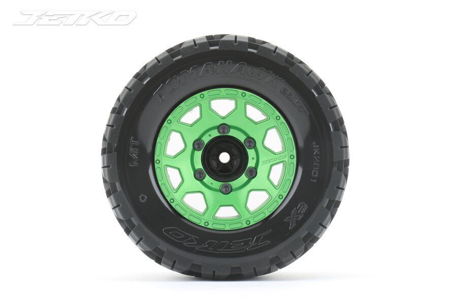 Jetko 1/10 MT 2.8 EX-TOMAHAWK Tyres (Claw Rim/Metal Green/Medium Soft/12mm 0 o/s) [2801CGMSGNB1]
