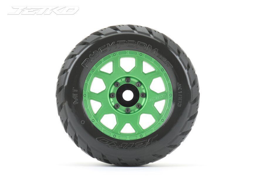 Jetko 1/8 MT 3.8 EX-ROCKFORM Tyres (Claw Rim/Metal Green/Med Soft/Belted/17mm 0 o/s) [1803CGMSGBB1]