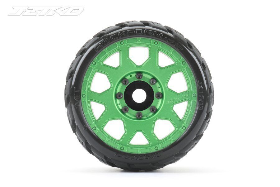 Jetko 1/8 SGT 3.8 EX-ROCKFORM Tyres (Claw Rim/Metal Green/Med Soft/Belted/17mm 0 o/s) [1603CGMSGBB1]