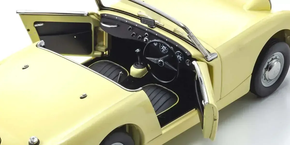 The Sprite entered the Austin Healey line-up in 1958 as the entry sports car model developed by BMC (British Motor Corporation) which existed from 1952 to 1966. Conceived as a small sports car for mass appeal, the minimalist engine and undercarriage were designed to keep costs down. Weight reduction was also a focus, and the Sprite adopted the world’s first semi-monocoque open body. While the 948cc inline 4-cylinder engine output was only 43ps, this was sufficient power for the 600kg vehicle weight (less than modern ‘light vehicles’), which was the highest power to weight in its class at the time.