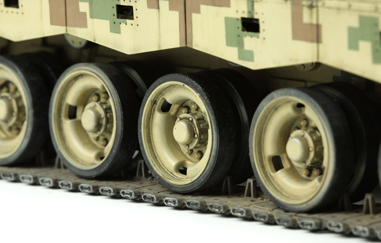 This TS-034 PLA Main Battle Tank ZTZ96B plastic model kit provides three build options: ZTZ96B MBT in 2016, ZTZ96B MBT in 2017 and the export version VT2. This kit contains a brand new movable suspension which has metal parts. The movable suspension looks good and works well. It’s firmer and more reliable.