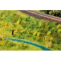 What’s so special about the Groundcover Foliage? Various grasses and pieces of flock material are electrostatically flocked onto a non-adhesive backing sheet. Due to the special, permanently flexible adhesive, the foliage can be effortlessly pulled off the backing sheet. The Groundcover Foliage is then incorporated into the model landscape as a whole or in pieces. We recommend the Landscaping Glue for glueing.