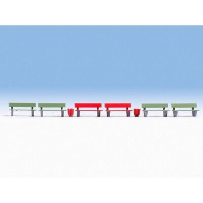 Noch - HO Benches - Red X 2 Green X 4 Bin - 14848