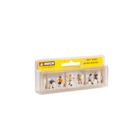 The “Children on the Kickabout Area” H0 minifigures from NOCH are ideal for recreating great scenes on a model landscape. Children meet at the playing field to kick a ball around and have fun. The round ball is shot forcefully into the large square goal. It’s a head-to-head race; everyone wants to be the winner, but who will decide the match? That’s the question – create this animated scene and liven up your diorama.