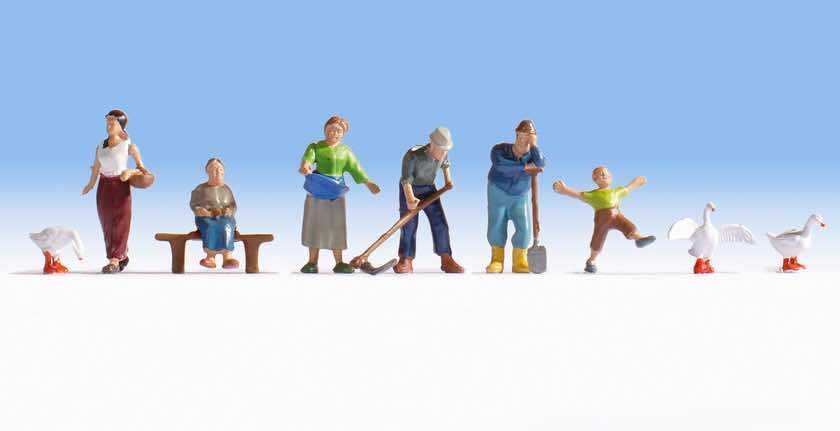 Farming family figures with geese.