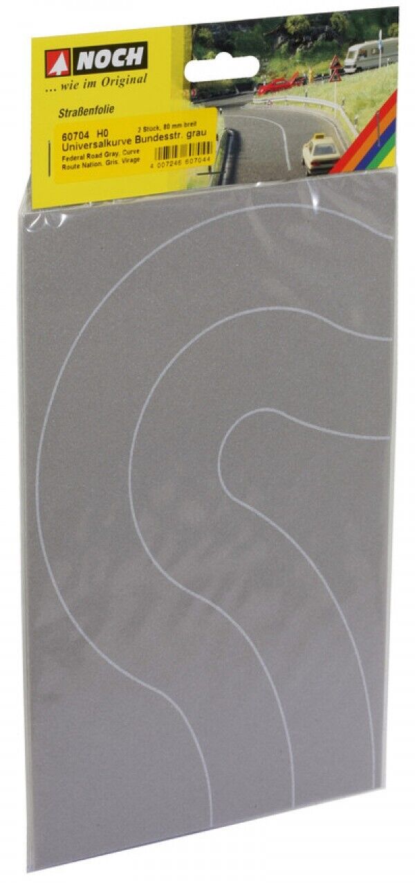 A realistic road design is very easy due to the NOCH Road Foils: The very stable, auto-adhesive, and flexible Road Foil is very easy to adhere. The Road Foils are available in very different variations and widths, such as the Federal Road or the Country Road, as a Curve, a Crossing and a Car-Park, as well as a Cobblestone Place. All NOCH Road Foils are also available in the colores "Asphalt" and "Grey" for the model railway scales H0, TT and N.