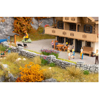 The walls are made of high-quality NOCH Structured Hard Foam and thus look exceedingly realistic. Another advantage of NOCH Hard Foam is that it is easy to process. The walls are separated from the backing material with a Stanley knife and can be glued directly into the model terrain. Remaining wall parts can be used for wall ends, paths, walls, retaining walls and other wall details.