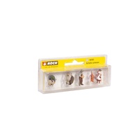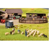 The model railway figures “Sheep Shearing” give a landscape with a realistic scene an even more realistic picture. Farmers shear their sheep before the warm summer days arrive and the sheep graze in the pasture in the blazing sun. The heat is unbearable for the animals with warm wool. However, they’re happy to be warmed by their wool in winter. Create this scene on a landscape and breathe life into it in a realistic way.
