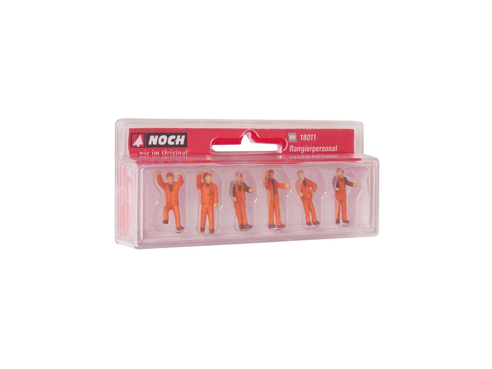 The NOCH Figures “Shunting Staff” are now also available in H0 gauge as hobby figures. The set contains model figures in 1:87 scale. Shunting staff wear orange-coloured work clothes with fluorescent strips so that they are not overlooked when working by the tracks and are also visible in the dark. In addition, all workers wear a hard hat for protection. Workers around the tracks should not be missing from your model railway layout. There is always a lot of activity at the train station and that’s why the shunting staff are now available for all fans of the hobby.