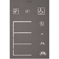 The start set also contains one template for each scale H0, TT and N as sample. A more extensive variety of templates with different street markings, such as directional arrows, cross walks, parking space markings and a lot more symbols for all scales, are available individually
