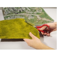 An additional plus of the Natur+ Mini Mats is the unproblematic processing. The mat is cut to the appropriate shape and size with scissors and stuck in the model landscape with NOCH Grass Glue.