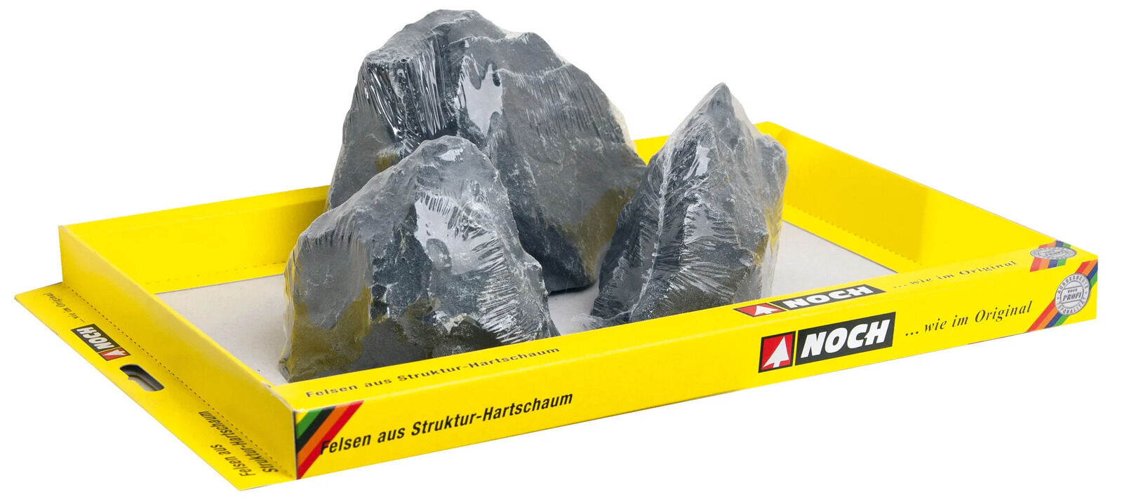 The NOCH Rocks “Arlberg” are ideal for particularly exposed mountain and rock formations. Peaks and plateaus can be created with the large pieces of rock. The structured hard foam rocks can be easily cut to size with a craft knife or a backsaw. They are then modelled into the landscape with NOCH Modelling Compound or NOCH Rock Compound. The mountains can be coloured with acrylic sprays and paints afterwards.