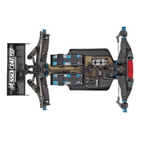 • RC8T4e chassis layout featuring two saddle pack-style battery configurations. Both configurations include a centrally mounted center differential and in-line center driveshafts for superior drivetrain efficiency and equalized chassis balance.