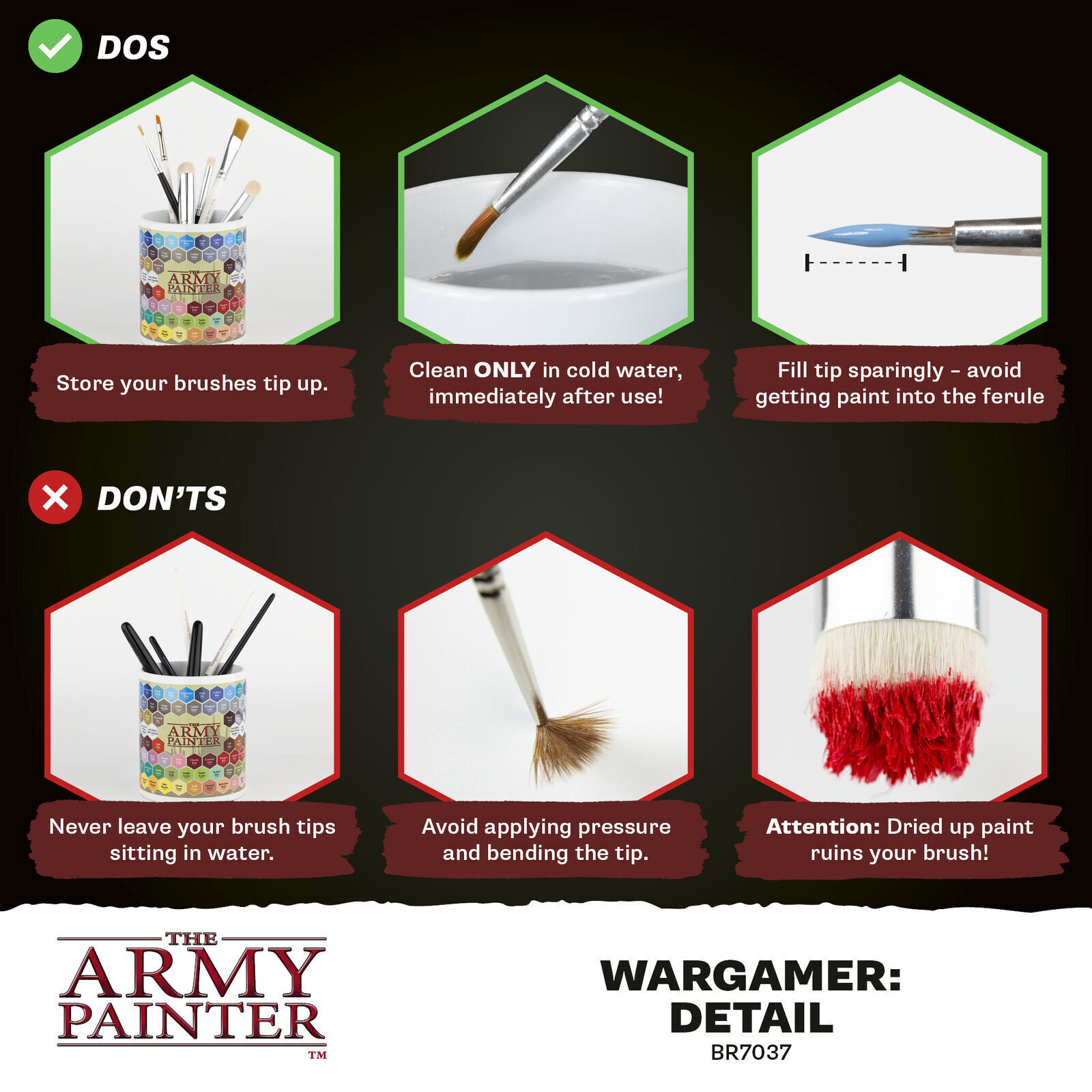 The Size 00 Detail brush with Bionic Bristles has a fine tip to add delicate highlights to the smallest parts of your miniature.