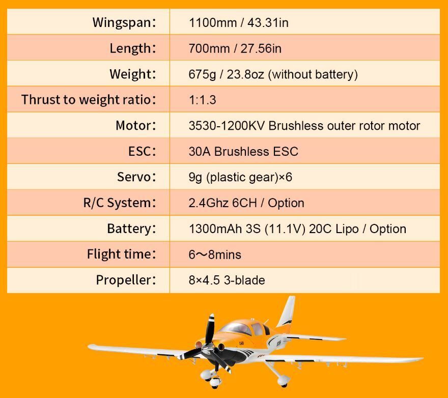 Requires a 3s 1300mah battery, charger and 6 channel radio set with receiver.