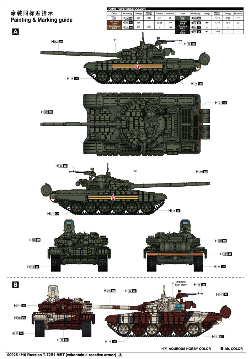 Trumpeter 1/16 Russian T-72B/B1 MBT (w/kontakt-1 reactive armor)