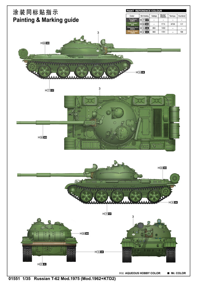 Trumpeter 1/35 Russian T-62 Mod.1975 (Mod.1962+KTD2)