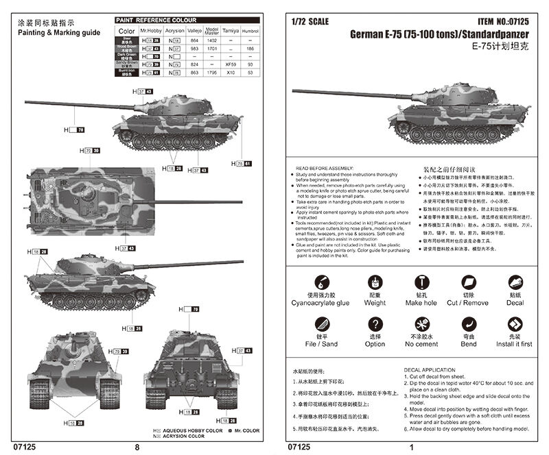 Trumpeter 1/72 German E-75 (75-100 Tons)/Standarpanzer Plastic Model Kit