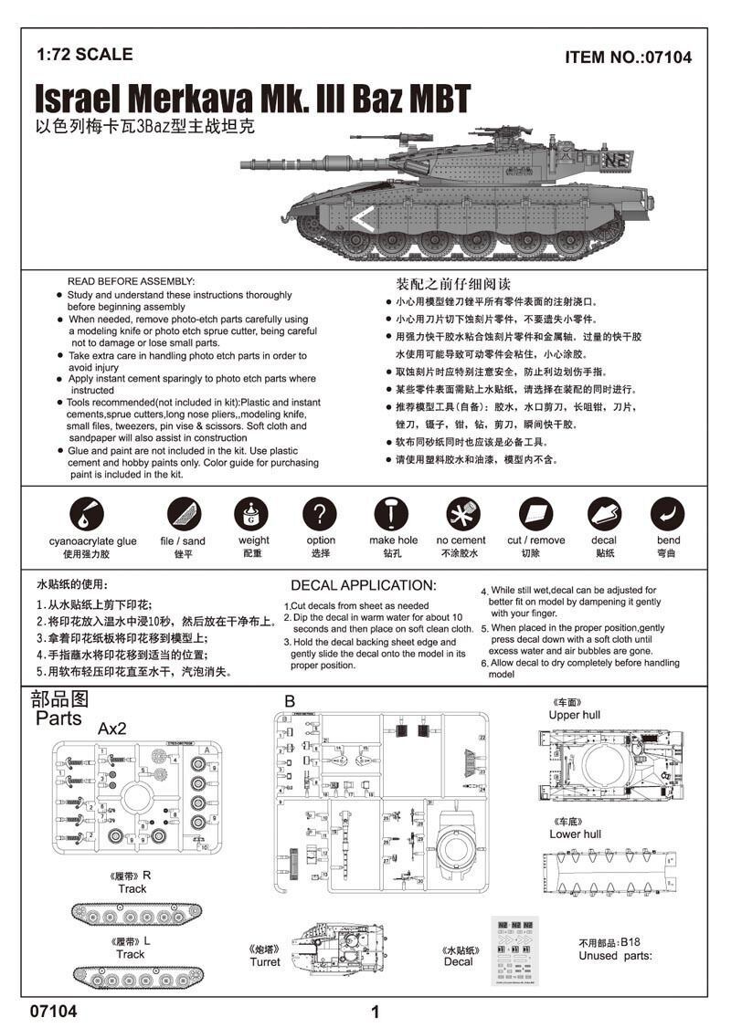 Trumpeter 1/72 lsrael Merkava Mk. lll Baz MBT