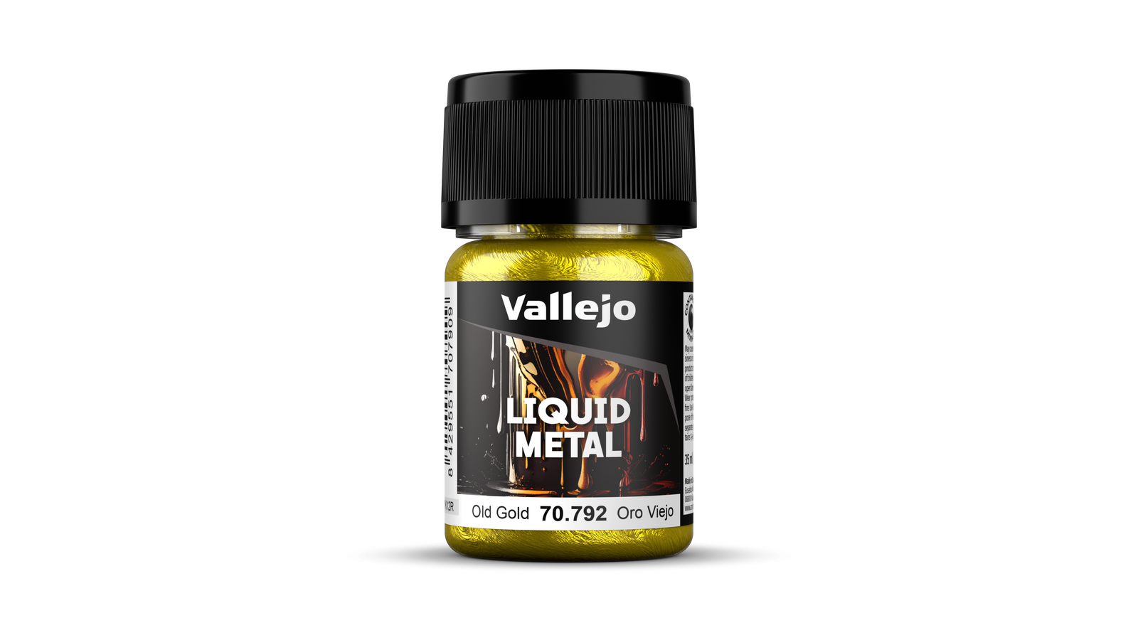Brilliant metallic colors manufactured with actual metal pigments in alcohol based formula which results in a metallic finish of extraordinary realism and permanence. The colors can be diluted with alcohol, mixed with one another to achieve further variations of tonality and dry rapidly on all kinds of surfaces. Brushes are cleaned with alcohol or with the Vallejo Brush Cleaner (ref. 28.900). Liquid Gold is flammable due to its alcohol content, but does not contain xylene or toluene.